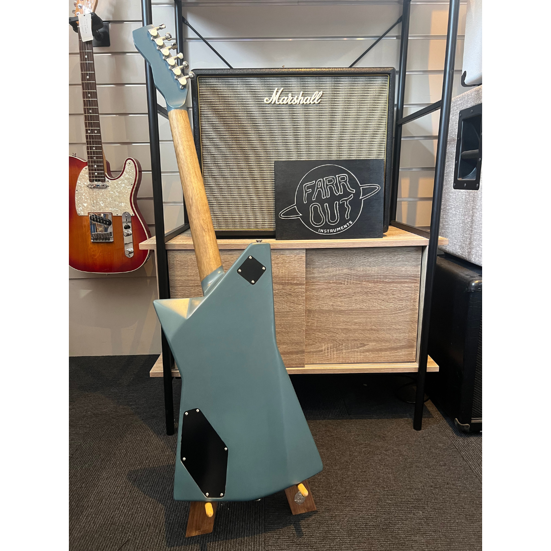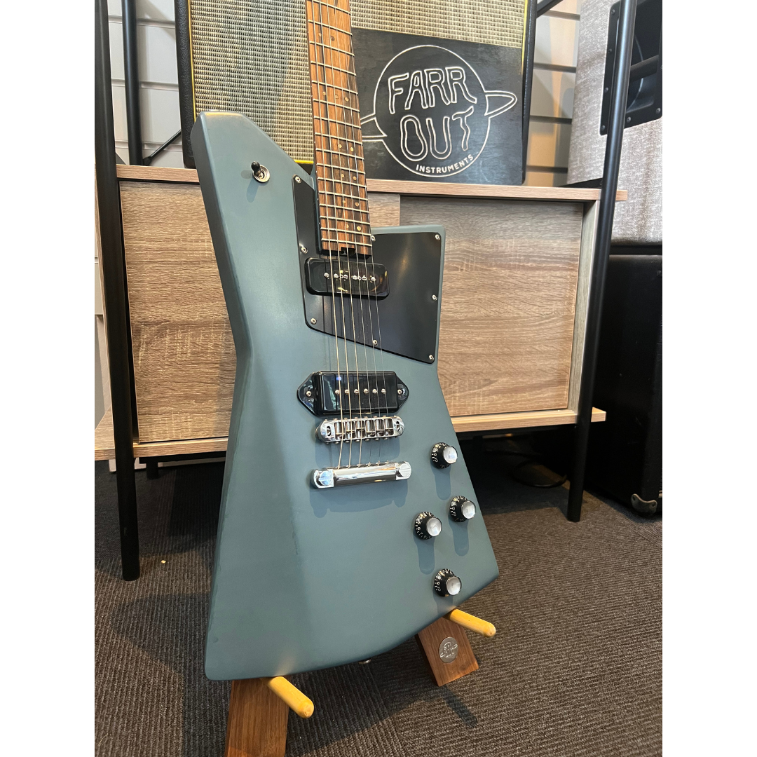 Starrgazer-modellen er Reece sitt eget design og oppleves som svært ergonomisk og balansert. Ingen neck-dive her i gården. P-90-mikrofonene er uvokset og låter meget tøft med mye karakter, men fremdeles med klarhet og definisjon. Halsen har en C+ profil som føles veldig naturlig i hånden. Anbefales på det varmeste å prøves.