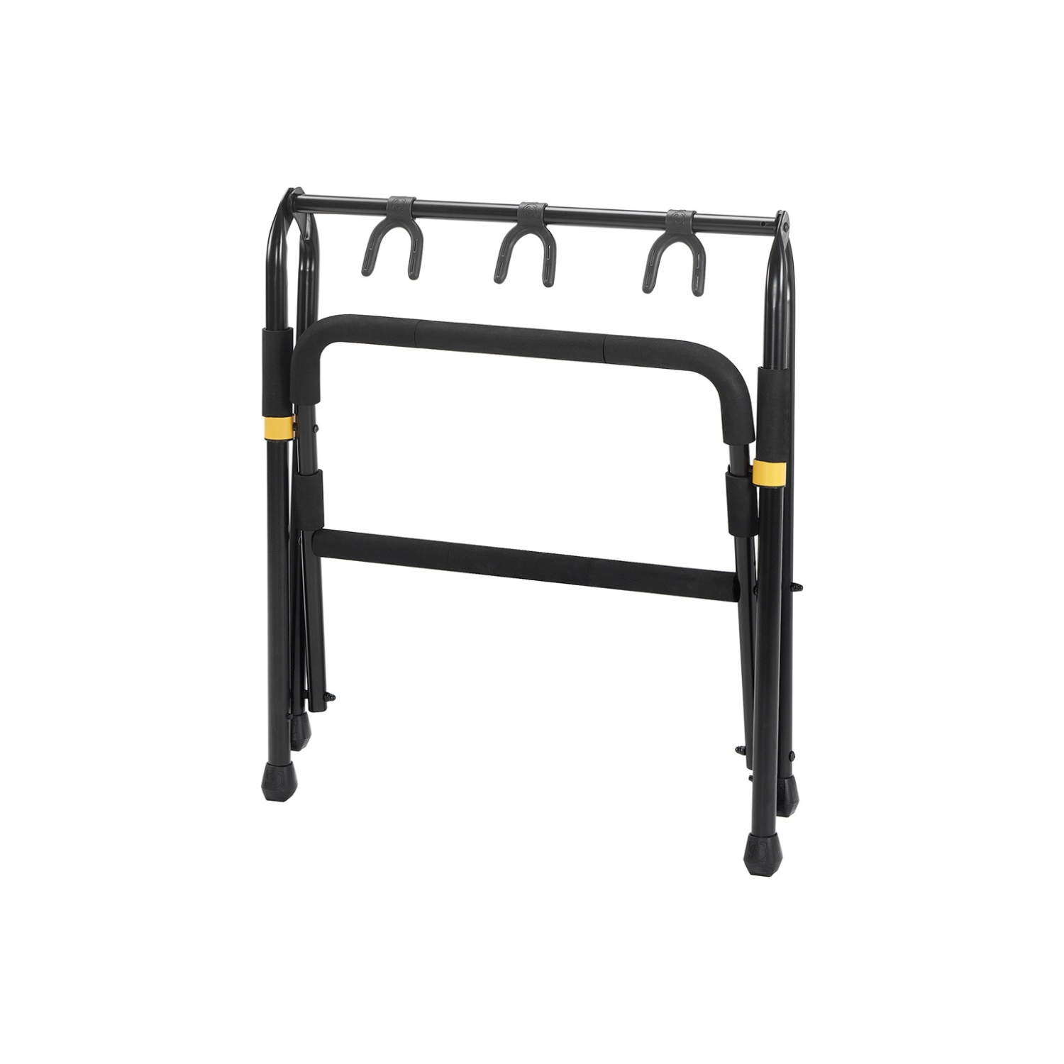 Ultra-spacesaving, ideal for stage useOne piece design for easy setup and carryingYoke position is adjustable for a perfect fitEach TPR yoke features 4 pick slots*Use HA205 to hold even more guitars on GS523BHeight: 640 mm (25.2”)Weight: 3.6 kg (7.9 lbs)Load capacity: 80 kg (176 lbs)Folded size: 720 mm x 630 mm x 110 mm (27.9" x 24.8” x 4.3")Base Radius: 620 mm x 500 mm (24.4" x 19.7”)