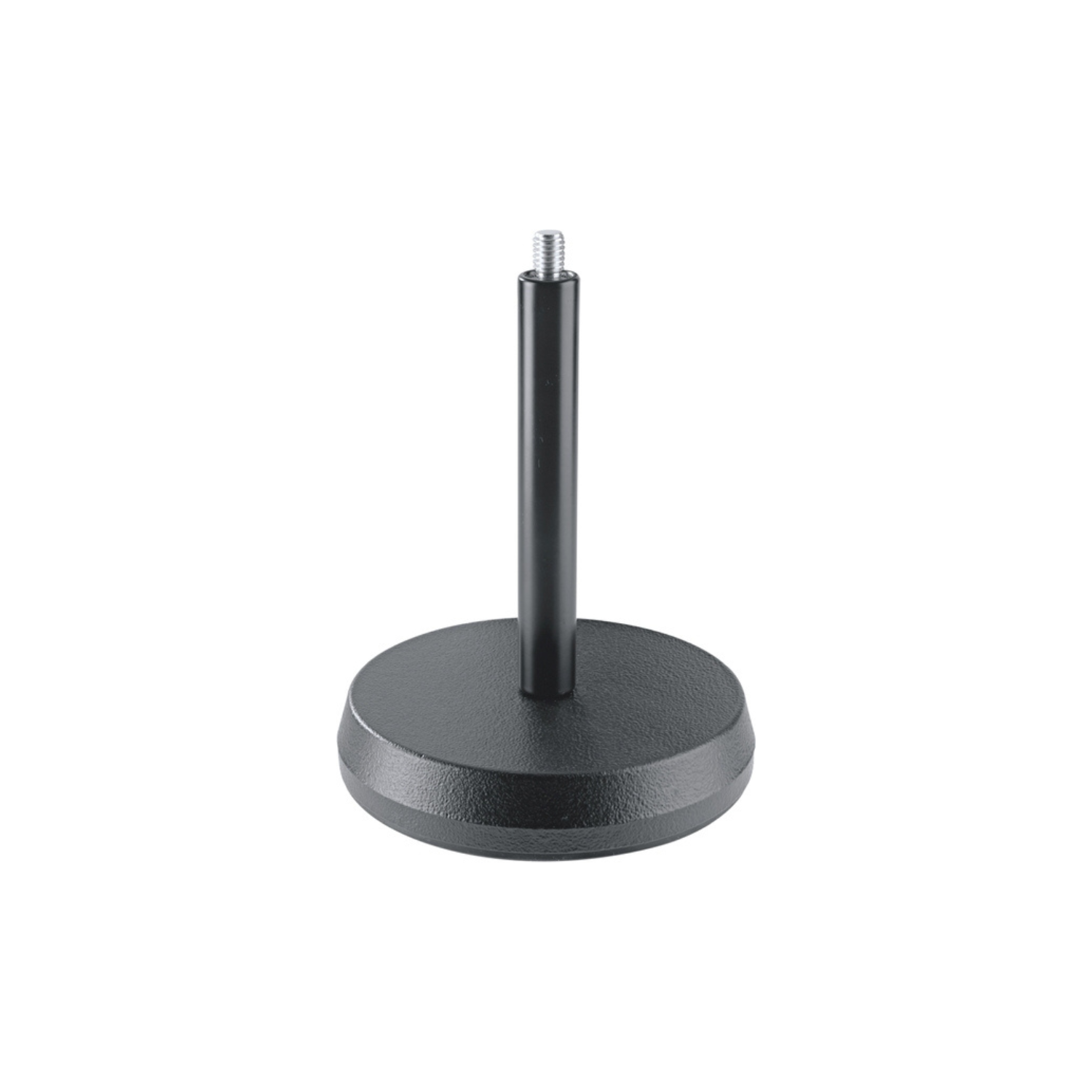 Bordstativ med rund fot og vibrasjonsdempende gummiring.